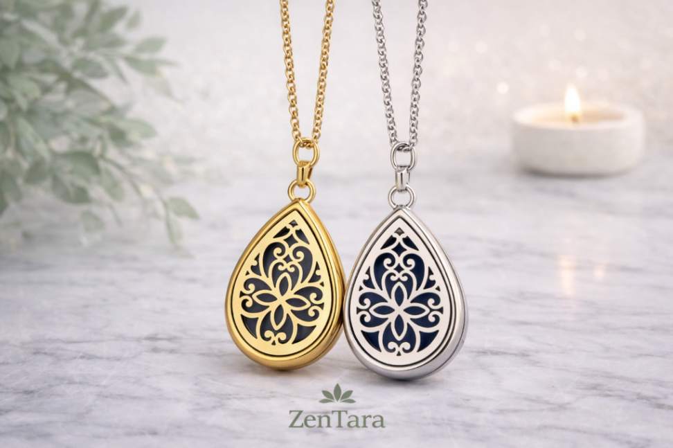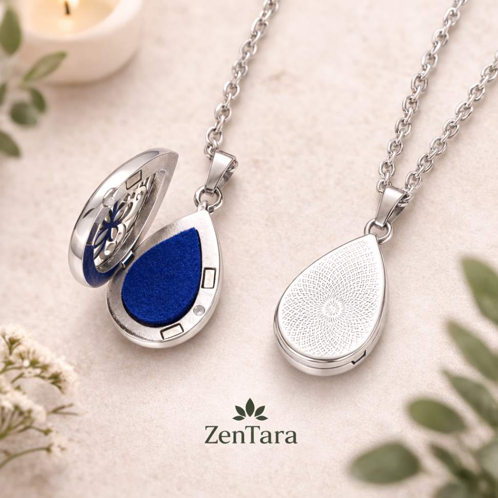 Inspirado na delicadeza e na fluidez da natureza, o Colar Difusor Gota D'água ZenTara foi criado para transformar pequenos momentos do dia em pausas de bem-estar.